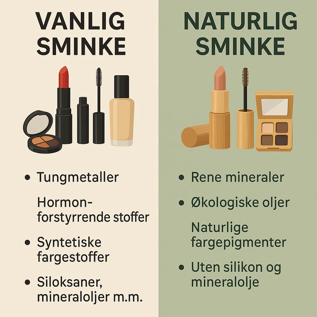 - Tungmetaller (bly, arsen, kadmium, nikkel, krom) – særlig i mineralbasert eller billig sminke.