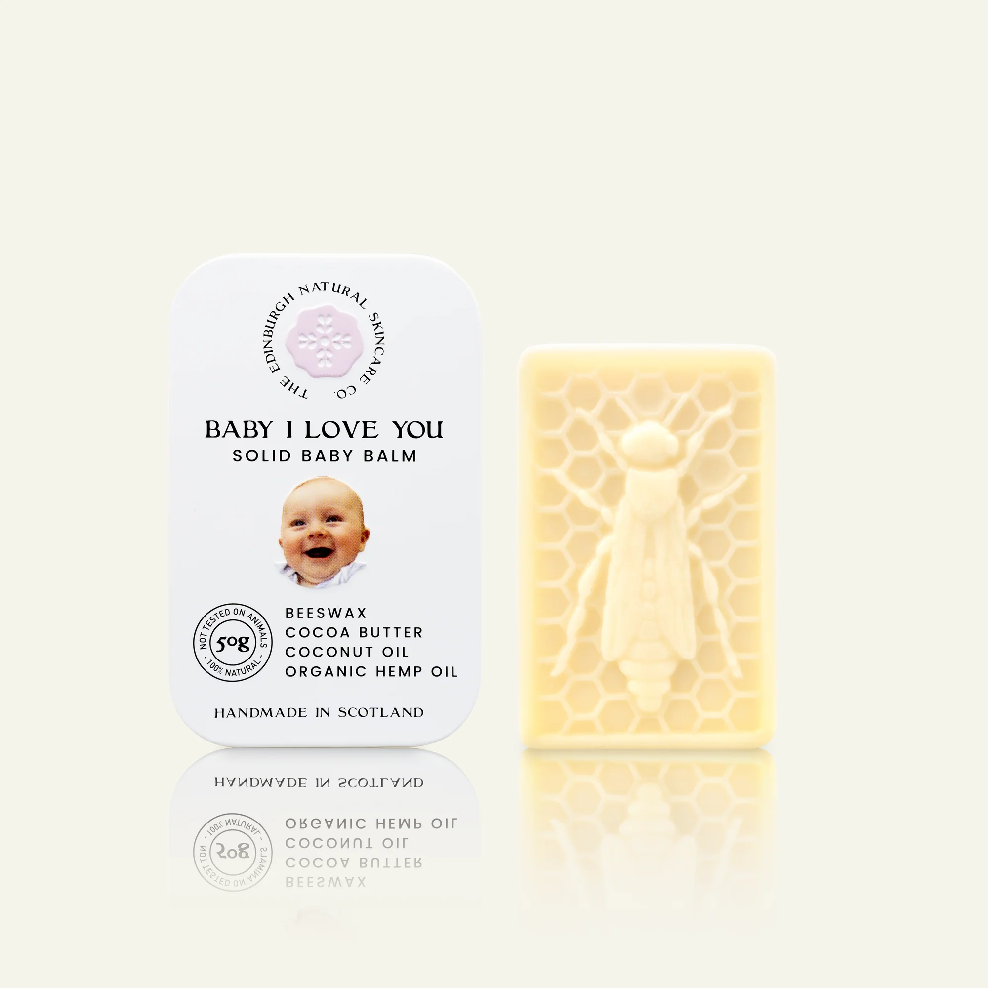 Barnekremen kommer i en fast form i en lett og elegant metallboks som er enkel å ha med i vesken, stellebaggen eller på reise.